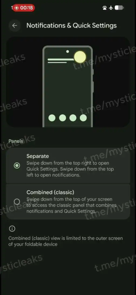 Según una filtración compartida por Mystic Leaks en Telegram, procedente de una versión interna de Android 17, la compañía de Mountain View estaría preparando un nuevo menú dentro de Ajustes -> Notificaciones. Se llama "Notificaciones y Ajustes rápidos", con dos comportamientos distintos entre los que podremos elegir: por un lado, el clásico panel combinado que conocemos desde hace años; y, por otro, un nuevo modo que cambia por completo la experiencia al deslizar hacia abajo de la pantalla.