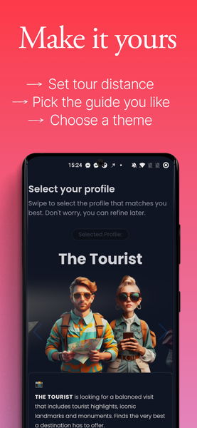 Además, esta app es muy sencilla de usar, ya que, para crear tu primera audioguía de viaje tan sólo tienes que seleccionar la duración, el lugar de inicio, la guía y el tema del recorrido que te interesa.