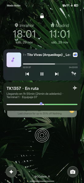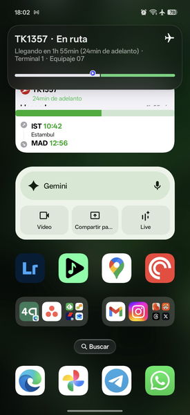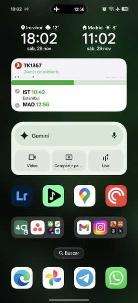Tengo configurado un widget en mi pantalla de inicio que me muestra la cuenta atrás para el embarque, la puerta y el asiento. Es un vistazo de un segundo. Desbloquear, mirar, guardar. Sin abrir la app. Así es como debe funcionar la tecnología.