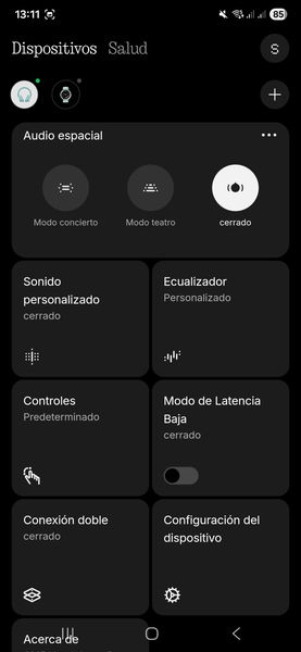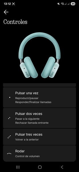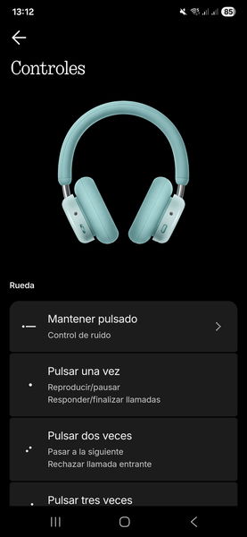 Además, desde ella se pueden personalizar los controles de toque de la rueda y de los auriculares, el tipo de cancelación de ruido que quieres, la cantidad e incluso puedes personalizar el perfil de escucha. Esto es algo que ya hemos visto hacer a fabricantes como JBL –cuando analicé los JBL Tour One M3 ya dije que Personi-Fi era un paso casi obligatorio– o en la última oferta en earbuds TWS de Creative, y es algo que se agradece.