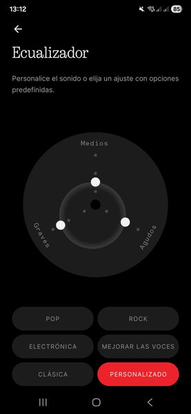 Eso sí, hay que usar dicho slider con mucho cuidado. Al mínimo apenas vas a notar presencia, pero si lo subes demasiado vas a ensuciar toda la imagen sonora creando una pelota con la que los transductores no van a saber lidiar. Puedes considerarlo como un microajuste, pero primero vas a tener que ajustar el ecualizador a través de la app. Desgraciadamente, es obligatorio.