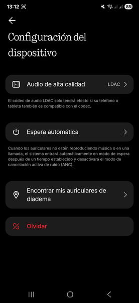 Nothing X es obligatoria para sacarles partido a estos auriculares. Lo he dejado ya ver cuando hablé de la calidad de sonido: vas a tener que meterte a ecualizar el sonido sí o sí, y luego terminar de completar el paquete usando el slider. Además, es necesaria para poder realizar la primera configuración del dispositivo.