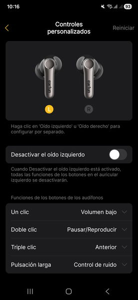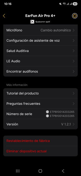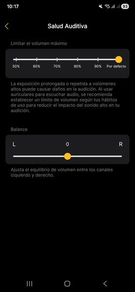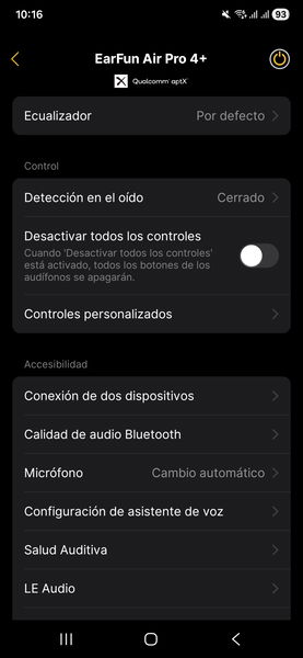 Los controles táctiles configurables quizá sean lo más útil, pero incluso eso es debatible: los ajustas una vez, te olvidas y no vuelves a la app salvo que quieras tocar el ecualizador. Y con estos auriculares, lo que viene por defecto es más que decente como para no perder el tiempo afinando curva tras curva. La app existe, es estable, y poco más.