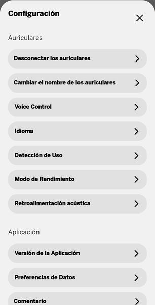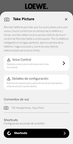 Desde la app también se puede acceder al asistente de IA de Loewe, previo consentimiento explícito para compartir datos con el fabricante —algo por lo que yo no he pasado—. Además, permite configurar la cancelación de ruido, la conexión multipunto, el audio espacial y distintos atajos en los controles físicos. Algunas opciones resultan algo redundantes, ya que también están disponibles vía control por voz, pero son detalles menores que parecen más propios de una app todavía en evolución que de un fallo de planteamiento.