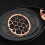 El chasis parte del LIRIC, un planar magnético que Meze ya vende, pero rediseñado por dentro para meter un driver dinámico normal. Las copas de ébano Macassar pesan bastante y amortiguan vibraciones, además cada unidad tiene vetas diferentes por ser madera natural. Meze apuesta por construcción duradera con piezas reemplazables en lugar de plástico que tiras cuando se rompe algo.