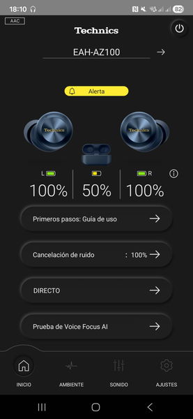 La gestión de los Technics EAH-AZ100 se apoya en Technics Audio Connect, una aplicación funcional y bien estructurada que evita tanto la simplicidad excesiva como la sobrecarga innecesaria. Desde ella es posible ajustar la cancelación de ruido, configurar distintos parámetros de sonido y gestionar el multipoint, todo con una organización clara y sin menús especialmente confusos. No es una app vistosa, pero sí coherente con el enfoque del producto.
