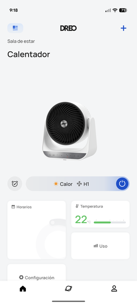 La app de DREO es, sencillamente, una de las mejores que he probado en esta categoría. El proceso de configuración es increíblemente simple y rápido. En menos de dos minutos, tenía el calefactor conectado a mi red Wi-Fi y listo para ser controlado desde el móvil.