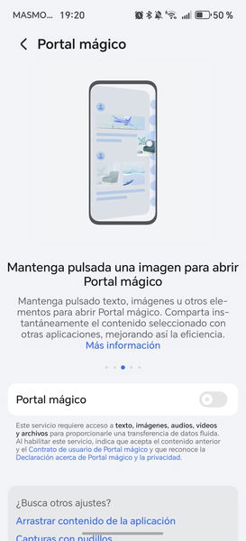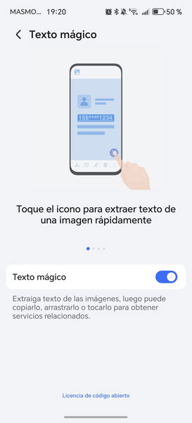 En este HONOR Magic8 Lite también tenemos acceso al conocido como portal mágico, que se activa cuando mantenemos pulsando un contenido un pantalla. De esa forma, podemos extraer el texto en pantalla o compartir el contenido seleccionado directamente con otras apps.