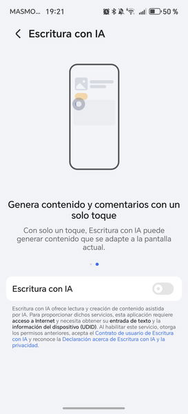 Dejando ese detalle ya a un lado, la verdad es que el sistema operativo del HONOR Magic8 Lite funciona sin problemas y tiene herramientas de utilidad para el usuario. No es un teléfono muy caro, pero eso no le impide contar con funciones de inteligencia artificial. Por ejemplo, "Escritura con IA", que genera contenido de texto basándose en lo que aparece en pantalla.