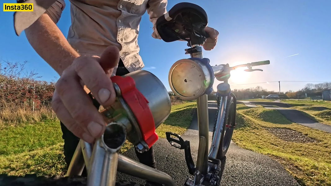 Colin Furze probando y mostrando su diseño de suspensión para bicicletas basado en imanes