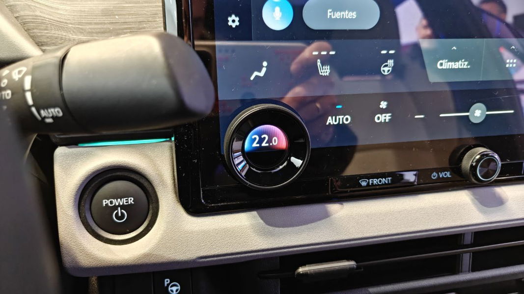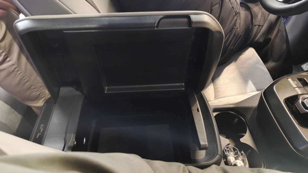 Un detalle curioso de la parte interior del Totoya C-HR+ es que no tiene guantera frontal tradicional, ya que este hueco se usa para albergar el sistema de filtros y se ha reemplazado por una guantera central que se puede abrir tanto desde la posición del conductor como desde la del copiloto.