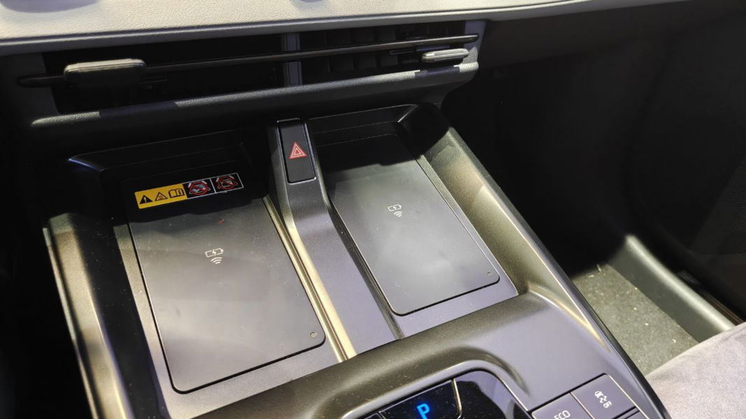 Por su parte, el diseño del habitáculo interior apuesta por una estética de líneas horizontales y cuenta con una parte central en la que encontramos una pantalla táctil de 14 pulgadas en la que se integran los controles del climatizador y un cuadro con dos cargadores inalámbricos para móviles, con el cambio de marchas automático y con varios botones que nos resultarán bastante útiles, entre los cuales se encuentra el accionador del freno de mano, ya que, como es habitual en los recientes vehículos de la marca, se ha eliminado el clásico tirador.