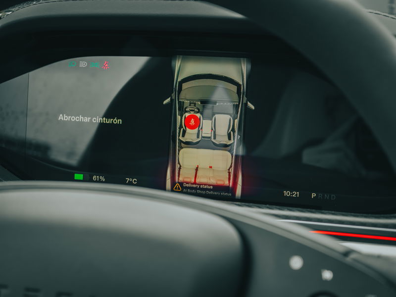 Pantalla tras el volante del Tesla Model S PLaid 2026 / Fotografía de Christian Collado