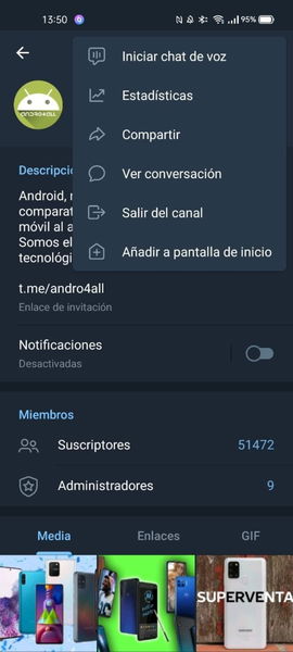 Esta nueva característica te permite crear chats de voz en los canales de Telegram utilizando tanto tu perfil personal como el perfil de tu canal y para iniciar una sala de voz tan sólo tenemos que pulsar en el botón de menú situado en la esquina superior derecha y pulsar en "Iniciar chat de voz".