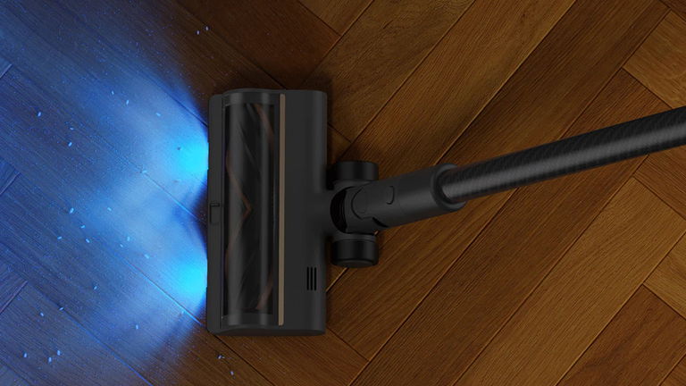 Una de las funciones más prácticas es su sistema de luces LED azules en el cabezal principal. Estas luces iluminan el suelo delante del aspirador, revelando el polvo y la suciedad que normalmente pasan desapercibidos a simple vista, especialmente en zonas con poca luz, como debajo de los muebles o en rincones. Gracias a esta iluminación, la limpieza se vuelve más eficiente. Es una de esas características que, una vez la pruebas, no puedes dejar de usar. Si querías un gran aspirador de este tipo, el Dreame R20 es exactamente eso, y barato.
