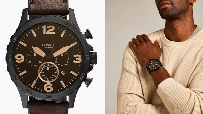 El Fossil Nate es ese tipo de reloj que da sensación de 'presencia', de elegancia. Hablamos de una caja de 50 milímetros de diámetro que no pasa desapercibida, y que complementa a la perfección a una correa de cuero genuino marrón. Es una pasada de reloj, muy elegante, que quedará de lujo en tu muñeca con traje, o con camisa y vaquero. Además, su esfera negra con subesferas de cronógrafo le acaba de dar una estética que mezcla lo casual con lo robusto. Por solo 121,51 euros (gracias al cupón de descuento en Amazon, recuerda) merece muchísimo la pena añadirlo a tu colección, y sí, es también una estupenda opción como regalo, sin ninguna duda.
