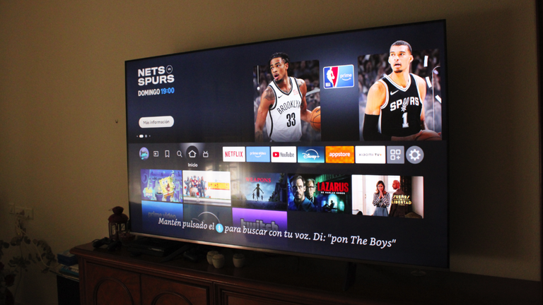Esta tele llega con Fire TV como sistema operativo. Este sistema tiene algo muy valioso, que es sencillo, fluido y directo. No requiere curva de aprendizaje ni pasos complicados. Las plataformas principales están ahí, a un par de clics: Netflix, YouTube, Prime Video, Disney+... Todas rápidas y accesibles. Los 32 GB de almacenamiento interno te permiten instalar apps sin preocuparte por el espacio y la conectividad también acompaña. Tiene WiFi de doble banda, bluetooth, 3 HDMI, USB, Lan... Está preparada para convivir con barras de sonido, videoconsolas, receptores y todo lo que se te ocurra.