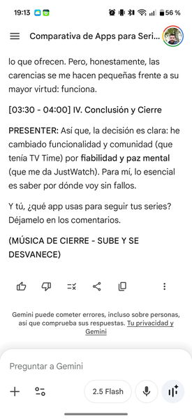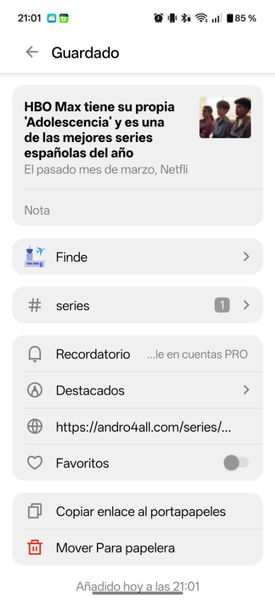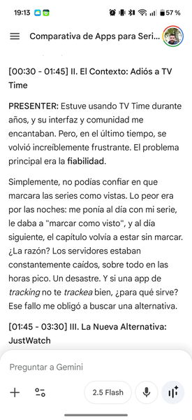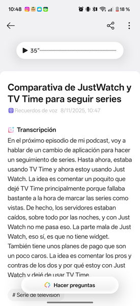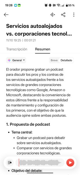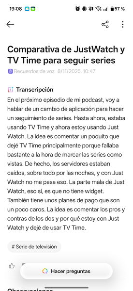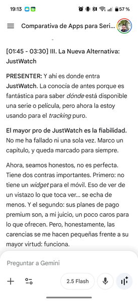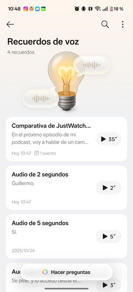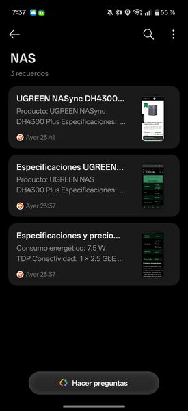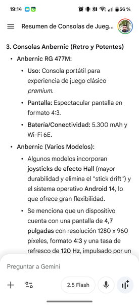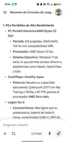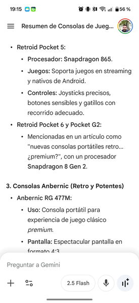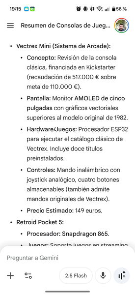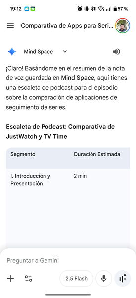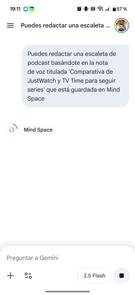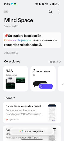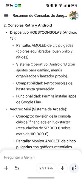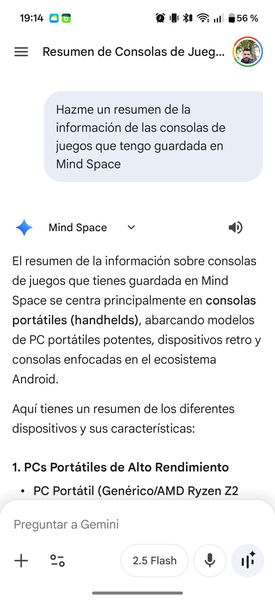 Sin embargo, lo realmente interesante de 'Mind Space' es su integración con Gemini, puesto que puedes pedirle al chatbot de IA de Google que realice acciones relacionadas con los contenidos que tienes guardados en tu almacén personal. En mi caso particular, lo he usado bastante para crear escaletas y guiones de nuevos episodios de mi podcast en base a una nota de voz grabada con 'Plus Key' y también para generar resúmenes de la información de varias capturas de pantalla de una temática en concreto como, por ejemplo, las consolas retro.