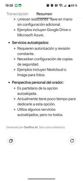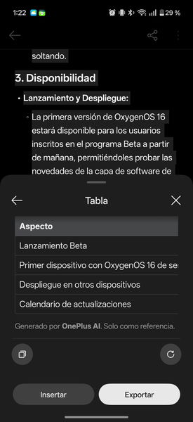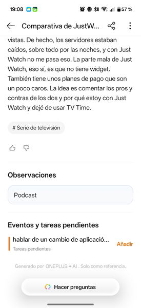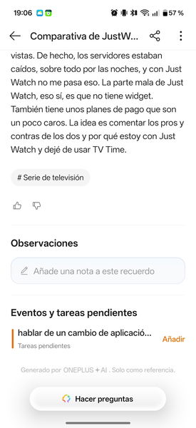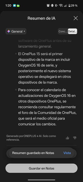 Pero eso no es todo, ya que una vez que guardes una captura de pantalla o un audio en 'Mind Space' podrás usar la IA para realizar consultas acerca de la información que contiene y crear una tarea usando la app de notas de OnePlus. Además, cuando guardes una nota de voz usando 'Plus Key' esta se transcribirá automáticamente en 'Mind Space'.