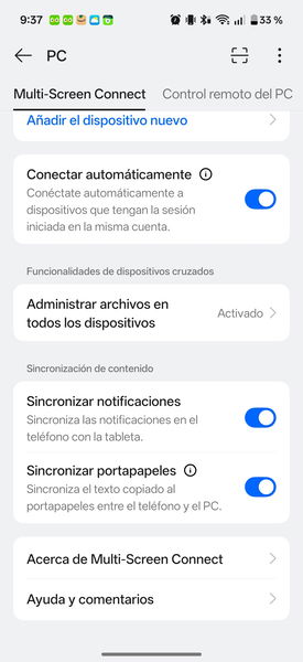 Asimismo, otra de las novedades de OxygenOS 16 a la que le he sacado un gran partido durante estas semanas es 'O+ Connect', una funcionalidad que te ofrece una integración total con tu PC con Windows o Mac. Esta función es perfecta para tener sincronizados tu OnePlus 15 y tu PC, ya que te permite acceder al portapapeles de tu smartphone desde el ordenador, ver las notificaciones del móvil en el PC, transferir fácilmente archivos entre ambos dispositivos, controlar tu teléfono de forma remota desde el ordenador e incluso usar tu móvil como el ratón del PC