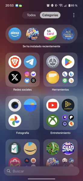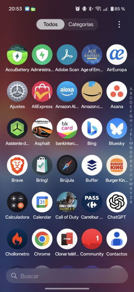 En concreto, OxygenOS 16 estrena una nueva interfaz que es mucho más bonita y coherente que la versión anterior. En este sentido debemos destacar que dicha interfaz apuesta por un diseño más luminoso y brillante, algo que se nota sobre todo en el panel de notificaciones y en el de ajustes rápidos y que también cuenta con un nuevo cajón de aplicaciones con la barra de búsqueda ubicada en la parte inferior, y con dos pestañas en la parte superior que te permiten cambiar entre el clásico diseño de las apps organizadas alfabéticamente y uno más novedoso que utiliza la IA para organizar las aplicaciones en categorías.
