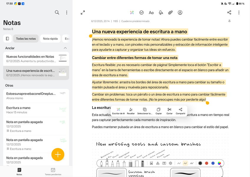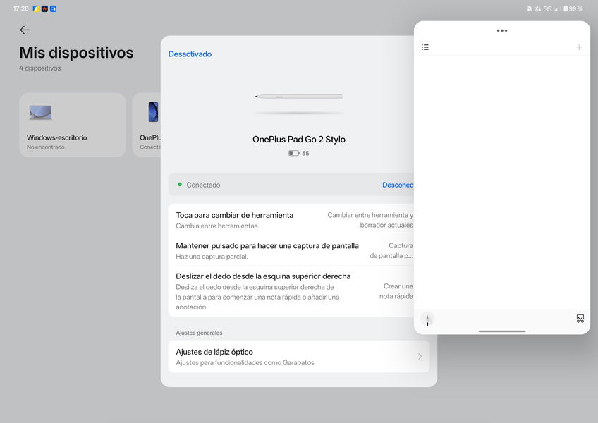Asimismo, a la hora de utilizar el OnePlus Pad Go 2 Stylo, OxygenOS también te ofrece una serie de funciones tremendamente útiles, ya que con este nuevo lápiz capacitivo puedes tomar notas con la pantalla apagada tan solo activando esta característica desde los ajustes y realizar capturas de pantalla parciales manteniendo pulsado su botón integrado.