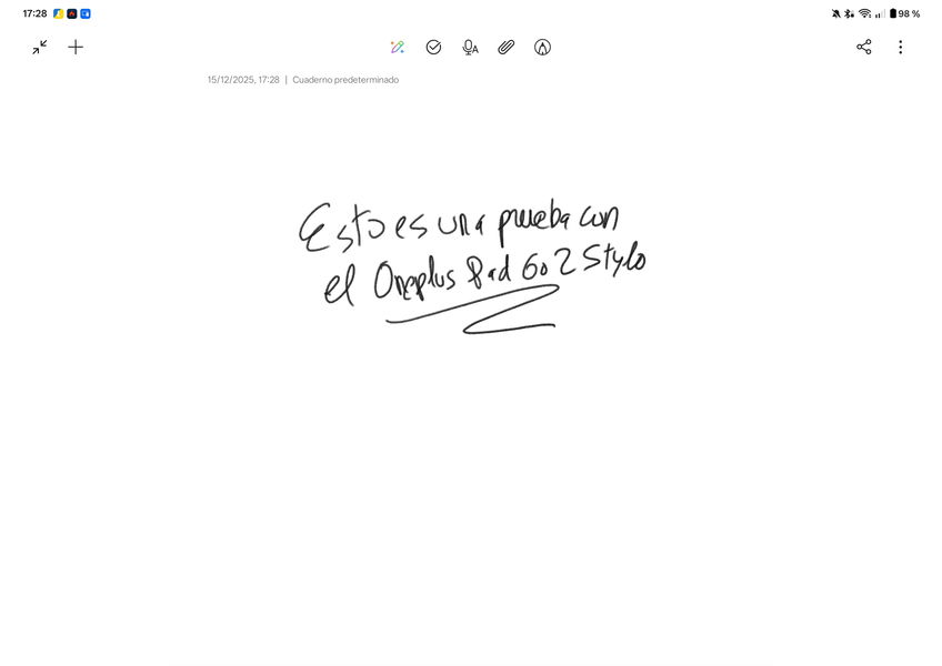 Si empezamos por el OnePlus Pad Go 2 Stylo, nos encontramos con un lápiz que es realmente cómodo tanto para escribir como para dibujar, no solo porque apuesta por un diseño ligero y ergonómico, sino también porque cuenta con 4.096 niveles de sensibilidad a la presión y con un sistema de baja latencia que hacen que parezca que estás escribiendo o dibujando sobre un folio de papel. Y esto se complementa con una serie de funciones de software de la cuales te hablaremos más adelante.