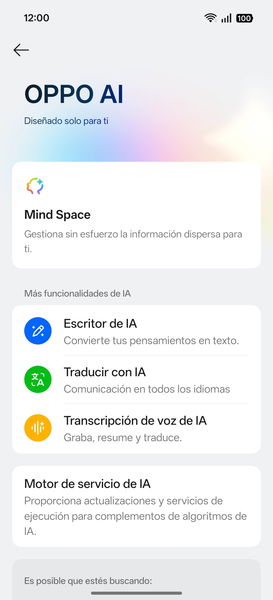Donde OPPO está intentando diferenciarse es en la IA, agrupada bajo el paraguas de Mind Space. No son solo funciones generativas en la nube, sino una integración en el sistema.