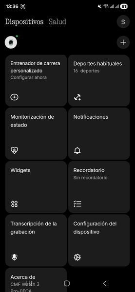 El CMF Watch Pro 3 se gestiona a través de la aplicación Nothing X, que concentra todos los dispositivos del ecosistema de la marca. La interfaz es sencilla de entender, permite cambiar esferas, configurar notificaciones y revisar métricas con claridad. Cuando todo funciona como debe, la experiencia es fluida y directa, sin pasos innecesarios ni menús rebuscados.