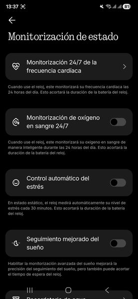 Sin embargo, la sincronización no siempre es estable. Hay días en los que el reloj se conecta y actualiza los datos sin problemas, y otros en los que se despareja sin aviso y obliga a reconectar manualmente. No es un fallo que arruine la experiencia, pero sí es uno de esos detalles que, a medio plazo, pueden resultar molestos. La sensación es que al software aún le falta algo de pulido.