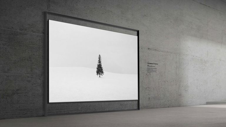 La idea es sencilla pero efectiva: eliminar la sensación de estar viendo un electrodoméstico. La pantalla parece flotar dentro de un marco arquitectónico, diseñada para parecerse más a una ventana gigante que expande visualmente el salón que a una televisión tradicional. Además, el sonido no sale de unos altavoces pegados detrás, sino que está integrado y equilibrado en el propio marco, haciendo que la imagen y el audio se sientan como una sola pieza.