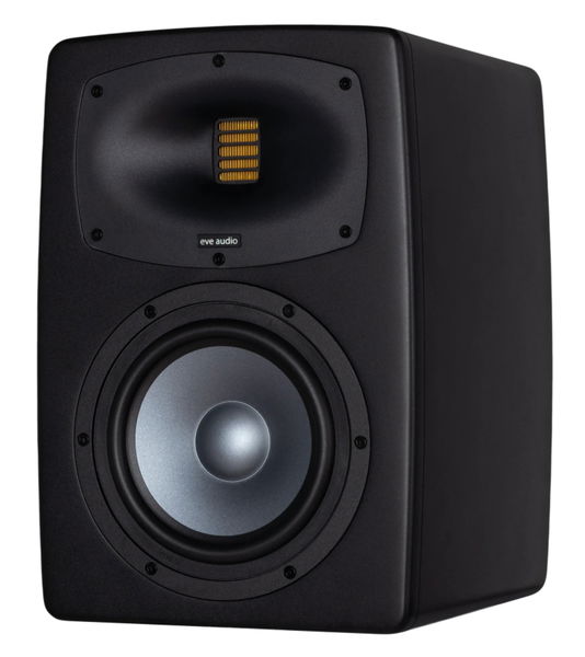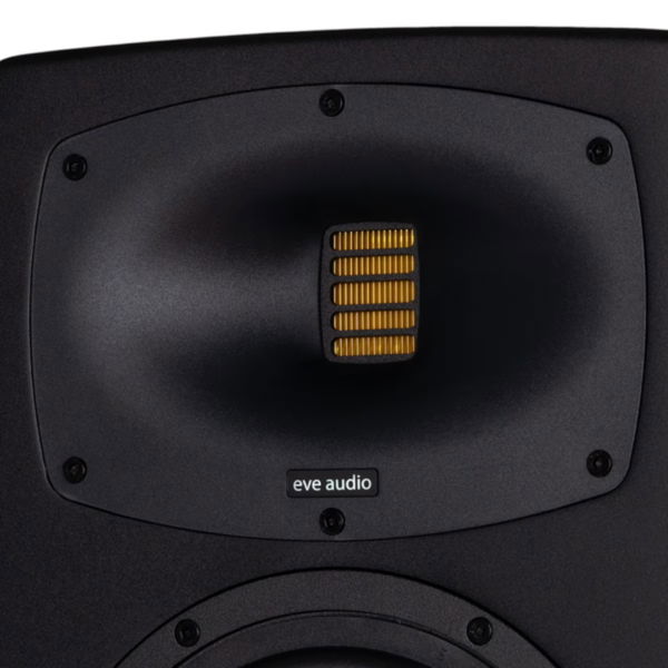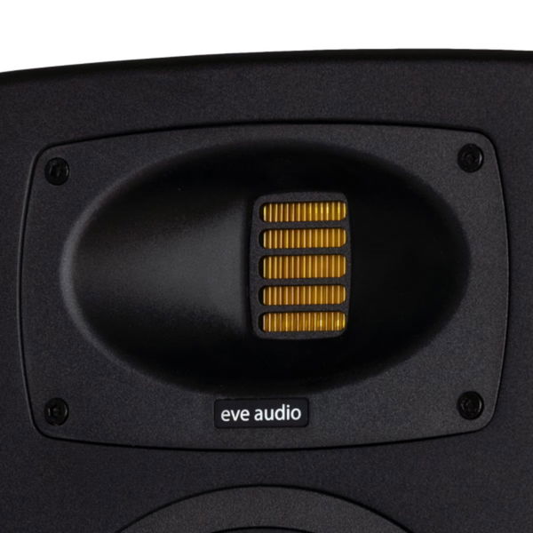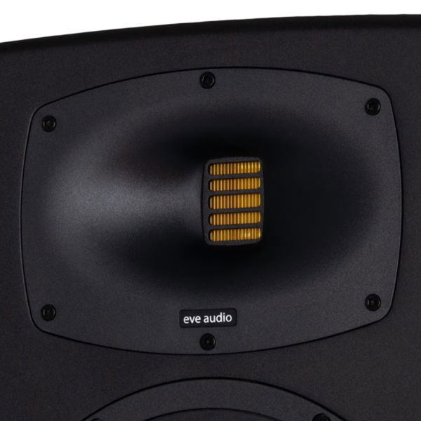 Todos montan el tweeter AMT (Air Motion Transformer) que EVE ha cocinado específicamente para esta serie. No es como un tweeter de cúpula normal: en lugar de empujar aire, lo "exprime" a través de una superficie plegada, lo que debería dar más detalle en agudos y menos distorsión. El waveguide GDC amplía la zona donde suenan bien, así que no tienes que estar clavado en el punto exacto para que funcionen.