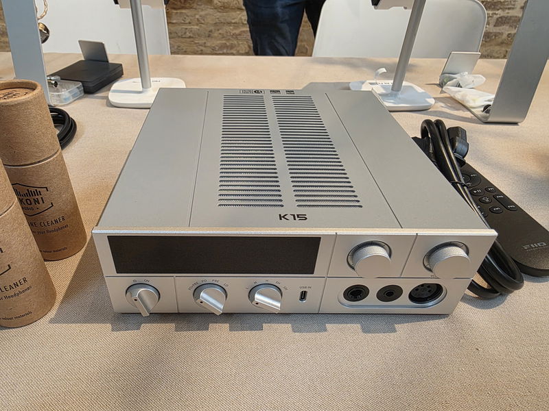 Mis primeras pruebas fueron con los FiiO FX15, IEMs con conector single-ended y balanceado, y fueron la sorpresa más grata de la jornada. Su escena sonora era sorprendentemente amplia para unos in-ear, con una separación instrumental tan marcada que casi podías "sentir" el espacio entre capas. Sin duda, me gustaría escucharlos con más calma en un entorno controlado. Me los habría llevado a casa si me hubieran dejado.