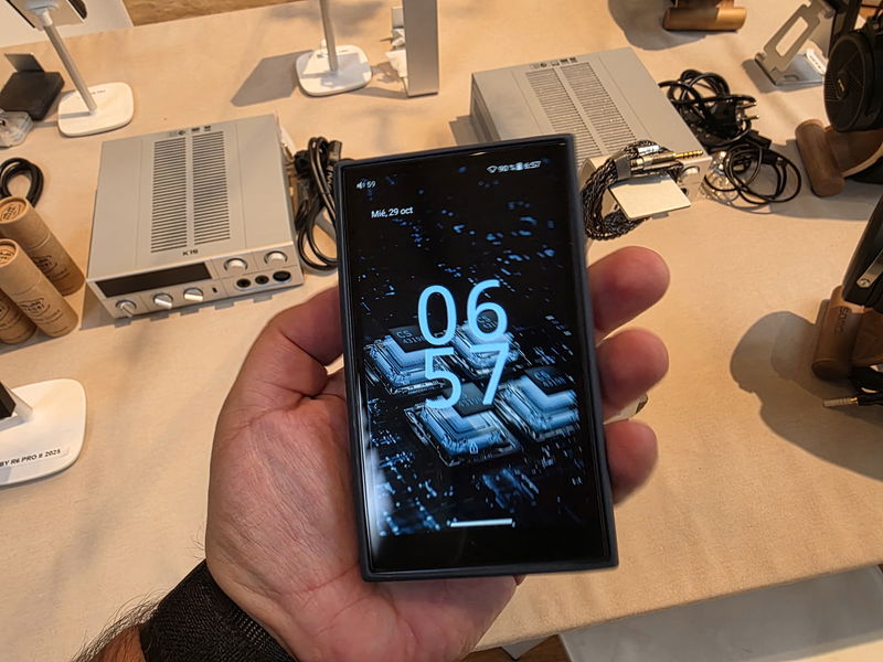 Aunque no estaba en la sala principal compartiendo espacio con los DAPs, los auriculares, los IEMs, los amplificadores Bluetooth –que no probé por falta de tiempo y porque no entiendo bien su razón de ser– y los dongle DAC –que hay millones en el mercado y no funcionan todo lo bien que deberían, al menos en Android–, había un peso pesado en el edificio reclamando atención con su regia presencia.