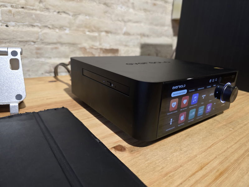 Acompañando al DMP-A10 –no muy lejos de él, de hecho– estaba el Eversolo Play CD Edition, una minicadena – streamer todo en uno que, sobre el papel al menos, es mucho más versátil que la Teufel Kombo 62 que pude probar hace unos meses. Esta unidad siempre me ha llamado mucho la atención y me gustaría poder dedicarle tiempo algún día porque combina conveniencia con lo mejor de Eversolo, que es su estupenda versión de Android y sus capacidades para reproducir música en red. No estaba el hermano menor real del DMP-A10, el DMP-A6 que ha visto una segunda generación este año, pero el Play CD Edition es una buena representación de la familia.