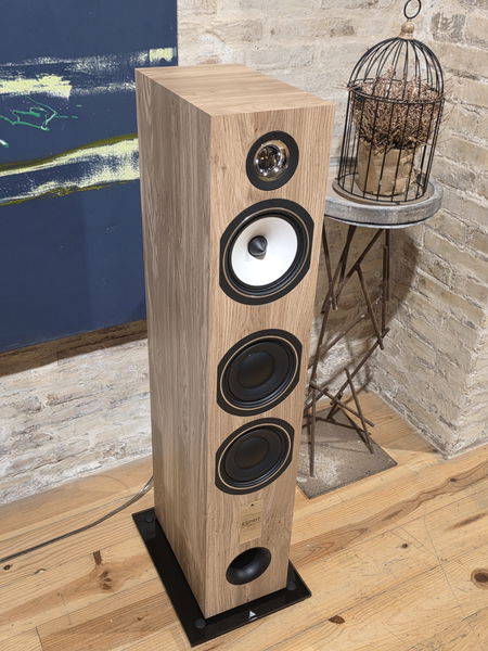 Ambas unidades estaban flanqueadas por altavoces pasivos Triangle, una marca francesa de prestigio alto en el mundo de la alta fidelidad. Ambas unidades ofrecían un sonido estupendo, con las torres Esprit brillando especialmente. Sin tener las specs delante, el oído me dijo que hacía falta un equipo con músculo para mover esas cajas. Son productos de gama alta, no vale cualquier cosa. Eso sí, de lo mejor en lo que a definición y escena sonora respecta que he escuchado nunca.