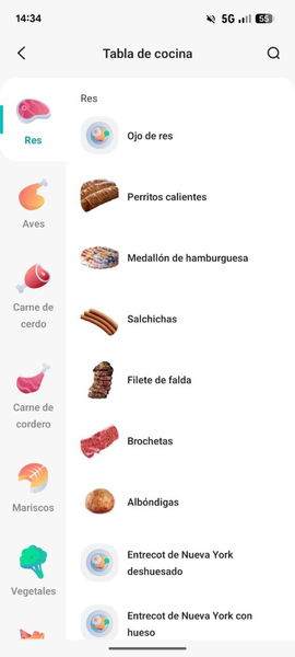 Con la app VeSync podemos acceder a una tabla de cocción que me ha parecido una maravilla. En ella seleccionamos el alimento que vamos a cocinar y el tamaño de la ración, y la propia app nos dirá el modo, el tiempo y la temperatura que debemos emplear. Eso sí, para comenzar la cocción debemos pulsar el correspondiente botón en la freidora, algo que entiendo por motivos de seguridad.