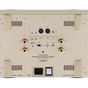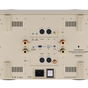 El preamplificador es la pieza más peculiar del conjunto. Su fuente de alimentación va en un chasis de aluminio completamente separado que actúa físicamente como base del aparato. La idea es mantener alejada la electrónica de sonido de cualquier interferencia eléctrica que genere su propia alimentación. Es una solución cara de fabricar, pero a estos precios se da por supuesto.