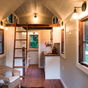 Por dentro la cosa es espartana y el salón ofrece un espacio muy justo para el día a día. La cocina lleva un fregadero, dos fuegos a gas y frigorífico, una dotación calcada a la de esta vivienda ultra compacta para dos personas. Todo está apretado para cumplir con lo básico, aunque la comodidad parece sacrificada por el tamaño.