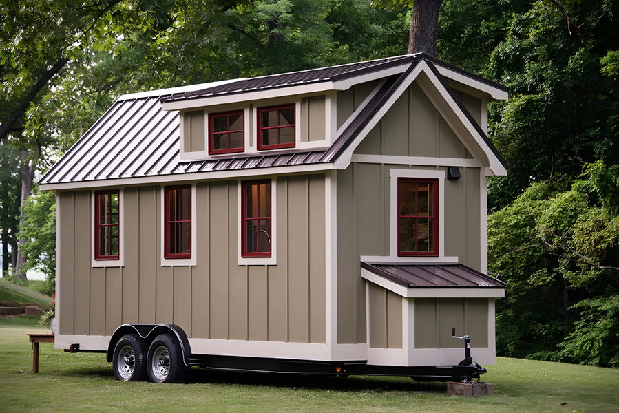 La Ynez se vende en longitudes de 6 y 7,3 metros, unas dimensiones que para el mercado estadounidense son casi de juguete. El exterior usa madera tratada y un tejado metálico, buscando aguantar el tipo a la intemperie. Tiene un porche frontal minúsculo y un cajón de almacenaje externo, accesorios pensados para estirar la utilidad de una planta minúscula.
