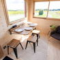 La planta baja es un ejercicio de contención inteligente. El salón es diáfano y prescinde de sofá grande en favor de una butaca y una estufa de leña, vital para los inviernos en los Alpes. Lo más interesante es la mesa de comedor de roble: es abatible y sirve tanto para comer cuatro personas como de escritorio para trabajar. Es una filosofía de mobiliario multifunción muy similar a la de esa casa prefabricada que funciona como un puzle, permitiendo adaptar el espacio según la hora del día.