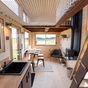 La información aparece detallada en New Atlas, donde explican que la estructura descansa sobre un remolque de doble eje. Lo que llama la atención es el acabado exterior en madera de cedro rojo y aluminio negro, una combinación que le da aspecto de cabaña alpina moderna. Pero el verdadero mérito está en el interior, donde han tenido que hacer malabares para meter un salón, cocina y dos habitaciones sin que el resultado sea un agobio para sus habitantes.
