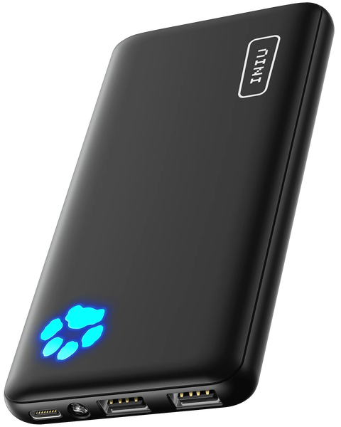 La retirada afecta al modelo INIU BI-B41, una power bank de 10.000 mAh fabricada en China por Shenzhen Topstar Industry Co., Ltd. Las unidades retiradas se vendieron exclusivamente en Amazon USA, entre agosto de 2021 y abril de 2022, por unos 18 dólares (algo más de 15 euros al cambio). Se identifican fácilmente por su carcasa negra o azul, el logotipo de la marca y una huella LED muy característica en la parte frontal, como puedes ver en las siguientes imágenes: