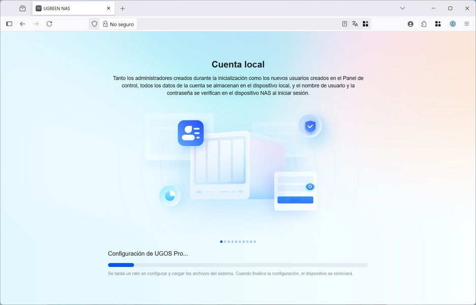 Lo primero que te pedirá es crear un usuario de administrador local, que después puedes vincular con una cuenta de UGREENlink que se utiliza para poder gestionarlo de forma remota. Le das un nombre a tu NAS y entrarás directamente al panel de UGOS Pro, el nombre de su sistema operativo.