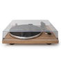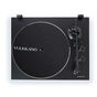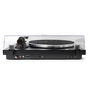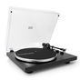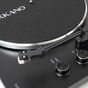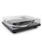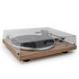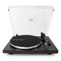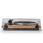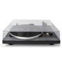 El motor utiliza tracción por correa en lugar de tracción directa, lo que significa menos vibraciones del motor que lleguen al plato y molesten durante la reproducción. El plato de aluminio gira a 33 y 45 revoluciones por minuto, las dos velocidades habituales para LPs y singles, e incluye alfombrilla antipolvo para proteger los discos mientras suenan.