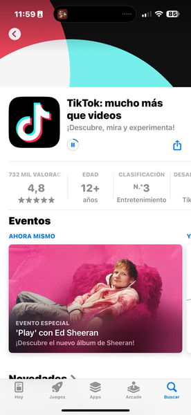 Es posible descargar TikTok en iPhone y iPad a través de la App Store de Apple. La app es gratuita y cuenta con versión adaptada a las tablets de Apple.