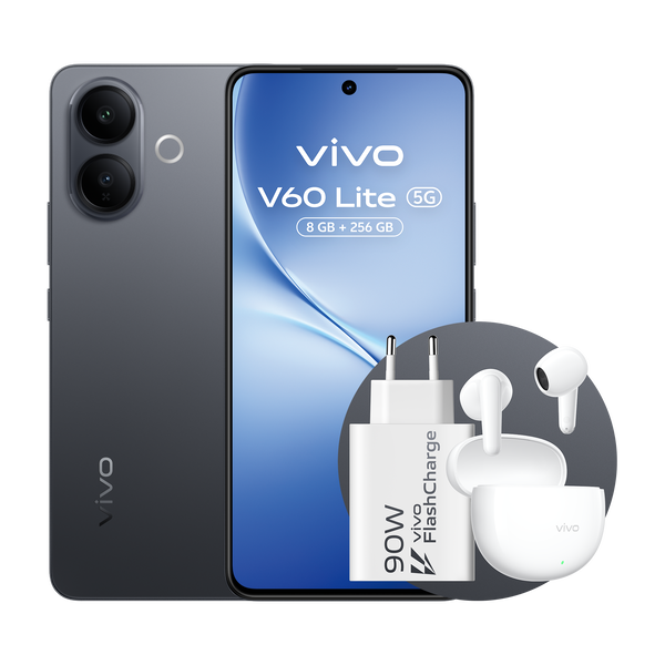 329 euros299 euros. Incluye un cargador FlashCharge de 90 W y auriculares Buds Air3. - vivo V60 Lite 5G (12GB/512GB).-