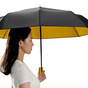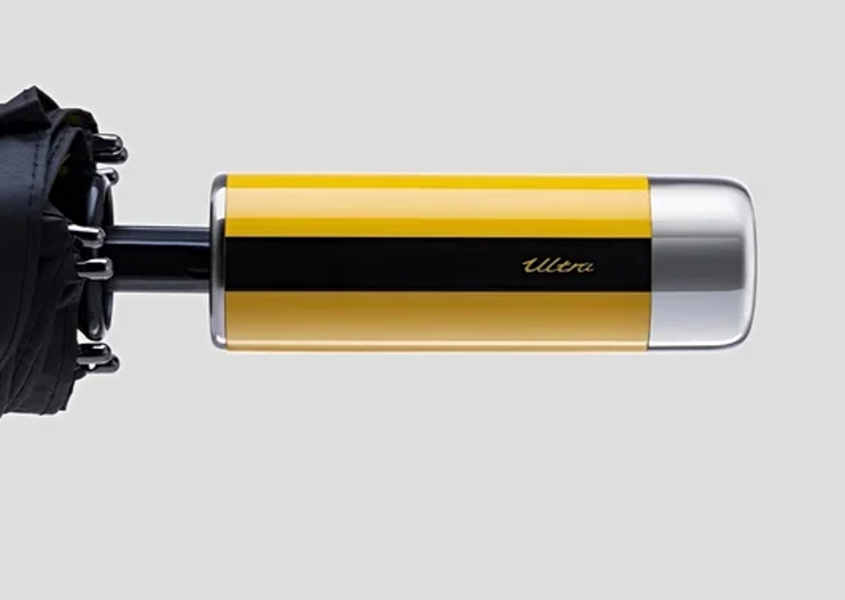A simple vista, parece un paraguas clásico y elegante en negro mate, de esos que pegan con absolutamente todo. Sin embargo, al abrirlo está la sorpresa: el interior está teñido de un tono amarillo eléctrico -el llamado Lightning Yellow- que recuerda al característico color del Xiaomi SU7 Ultra, el modelo más caro y potente de su gama de automóviles, que ya rueda por carreteras europeas desde este verano.